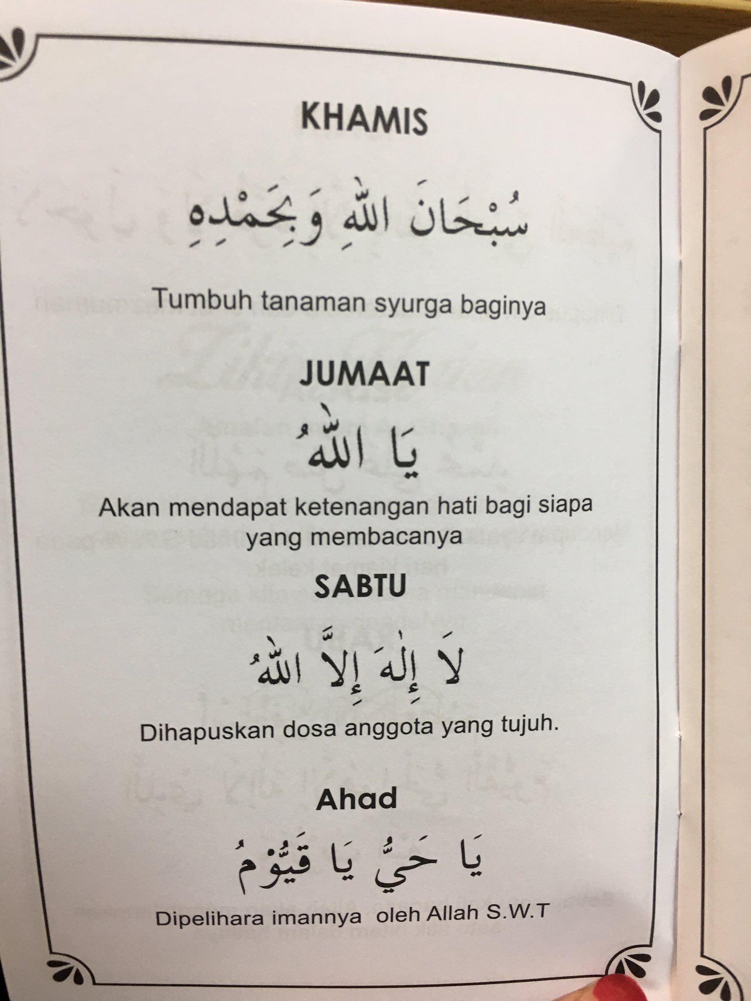 Panduan mengenai beberapa zikir dalam islam seperti zikir munajat zikir taubat dan penenang. Setiap bacaan doa juga telah ditambah ejaan rumi untuk membantu anda. Tiada penetapan untuk mengikut aliran susunan, boleh dibaca sebahagian atau mengambil salah satu ayat. Zikir dan doa selepas solat 2. Allahumma salli 'ala 'abdika warasulika wanabiyyikal amiina wa'ala alihi wasahbihi wasallim ( 1000 x ) hari rabu: Di dalam islam, zikir kepada allah adalah sebahagian ibadat dan orang islam yang melakukannya mendapat pahala. Astagh firullahal 'a ziim ( 1000 x ) Zikir harian dalam rumi senarai sekolah menengah di pulau pinang resepi nasi ayam chicken rice shop personal income tax rates semak nama senarai hitam raja s devan veni senarai nama hitam ke luar negara semakan bantuan sara hidup bujang 2019 tamadun islam dan perkembangannya For more information and source, see on this link : Ya hayyu ya qayyum ( 1000 x ) hari isnin: Selain daripada ibadah lain seperti solat dan bersedekah, amalan zikir adalah satu amalan yang boleh memberikan banyak manfaat dan kelebihan kepada orang yang mengamalkannya; Ithbat tanpa nafi (إثبات بغير نفى ). Doa dan zikir selepas solat dalam bahasa rumi dan jawi | أَسْتَغْفِرَاللهَ الْعَظِيْمَ الَّذِيْ لَاإِلَهَ إِلَّا هُوَالْحَيُّ الْقَيُّوْمُ وَأَتُوْبُ إِلَيْهِ.